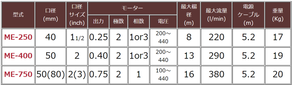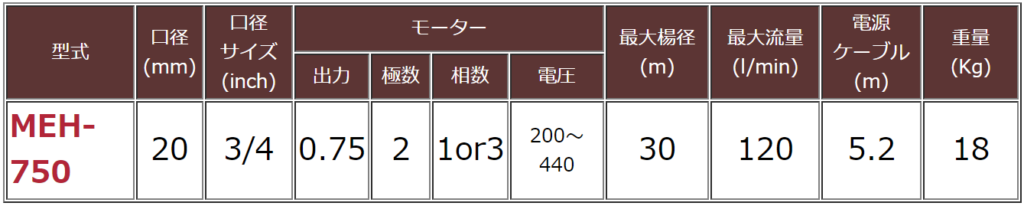 耐久性モーター & ボディー 特徴: ・組み込まれた2極のモーターがハイパワーを提供 ・モーター内臓型プロテクターを搭載。 ・スペシャルメカニカルシール (SIC TYPE)が施してあるため水漏れがありません。(カーボンタイプもご用意できます。) 利用例: ・農業灌漑 ・水アカの排出 ・温室や庭のスプリンクラー ・乗用車や建設機械の洗浄 ・建設現場 性能:50/60Hz 自動式ポンプ(ダイレクトフロータイプ、2フロートタイプ) ご希望があれば、他の電源も利用可能です。オートマティック型もご用意しております。 ・ダイレクトフロート MEH-750F 仕様: 高揚程型 最大ヘッド30m-10L/minタイプを採用。 特殊クローズ型ステンレスインペラを使用しています。 水の供給や給水、洗浄など他目的使用できます。また、特別のメカニカルシールを使用していますので、耐久性に優れているのが特徴です。 性能:50/60Hz 性能:50/60Hz
